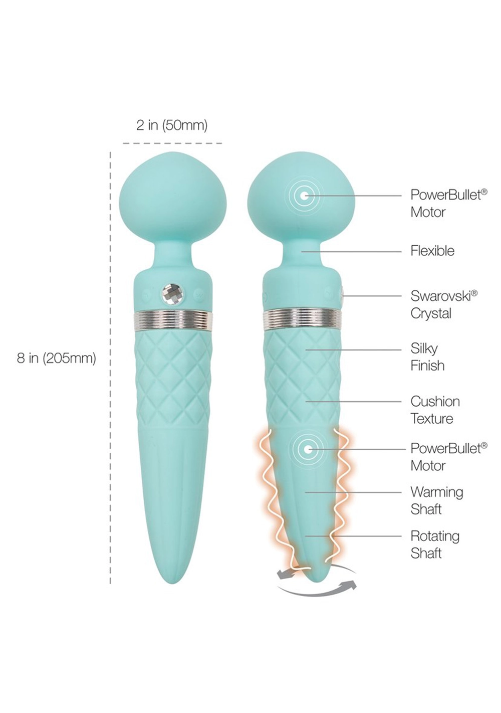 Sultry by Pillow Talk has a smooth rounded head and provides powerful vibrations. It has a tapered insertable handle that rotates 360 degrees for incredible G-spot stimulation. The rotating shaft of Sultry also offers a premium warming feature for added comfort and realism.
